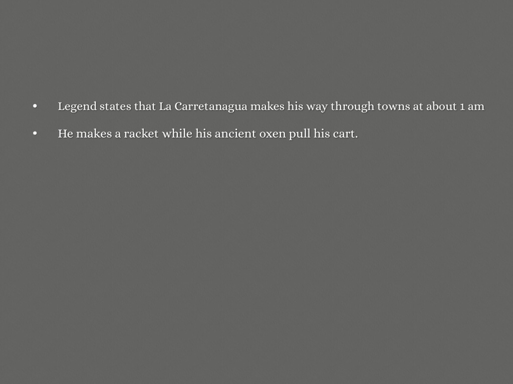 Legend states that La Carretanagua makes his way through towns at about 1 am