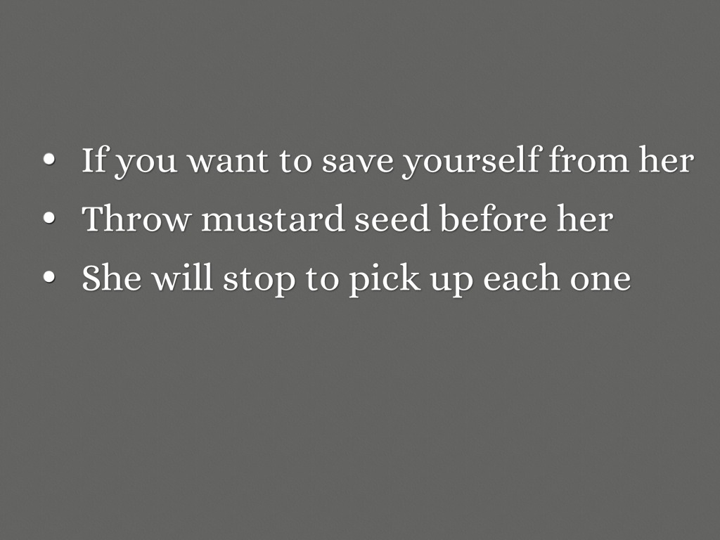 Throw mustard seed before her