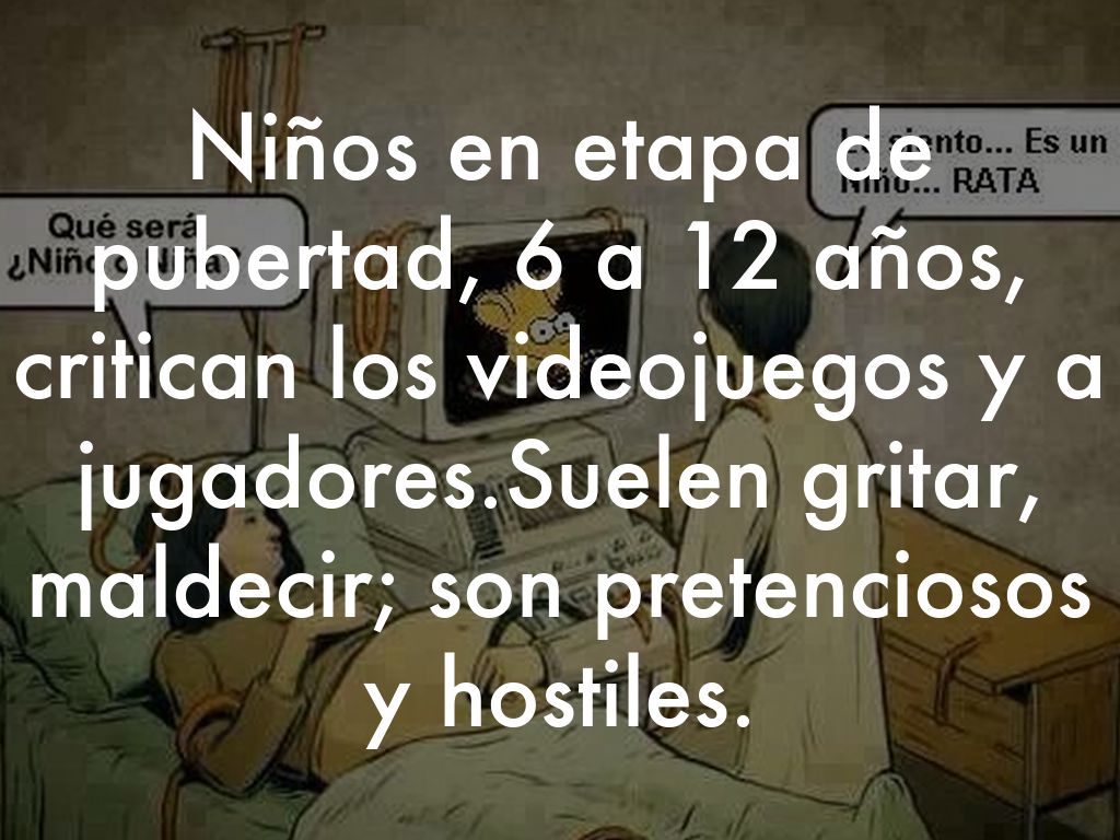 Niños en etapa de pubertad, 6 a 12 años, critican los videojuegos y a jugadores.Suelen gritar, maldecir; son pretenciosos y hostiles.