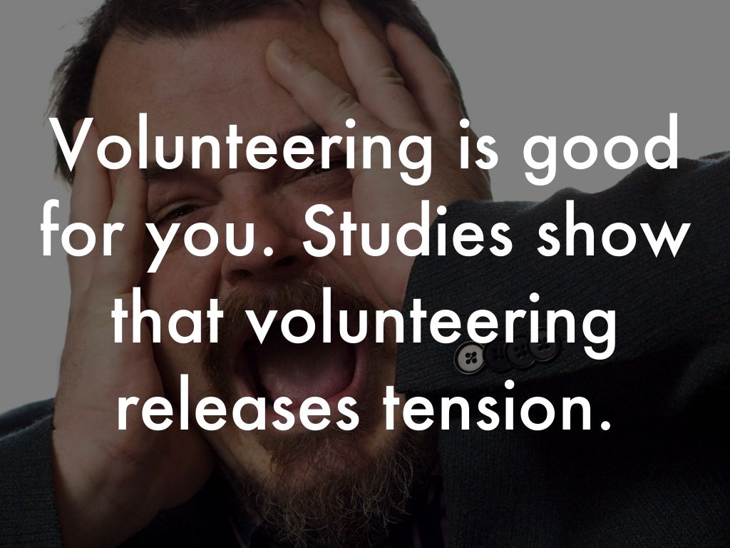 Volunteering is good for you. Studies show that volunteering releases tension.