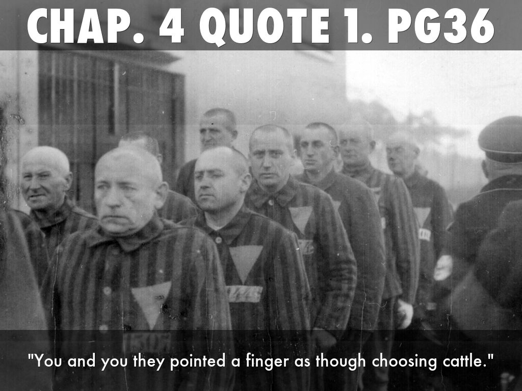 Then I understood; he head a bit of bread under his shirt. with remarkable speed he drew it out and put it to his mouth. his eyes gleamed; a smile, like a grimace lit up his dead face. And was immediately extinguished, the shadow threw itself upon him, felled to the ground stunned with blows the old man cried Meir. Meir, my boy don't you recognize me? I'm your father ... you're hurting me... your killing your father!