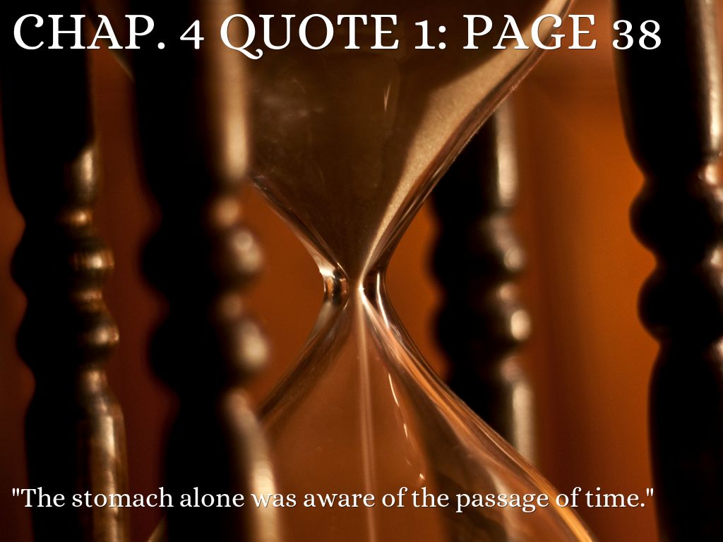 As time passes the hungrier a person becomes. Time reminds you to eat. It is important to live. He must live for his father. He must live to tell his story.