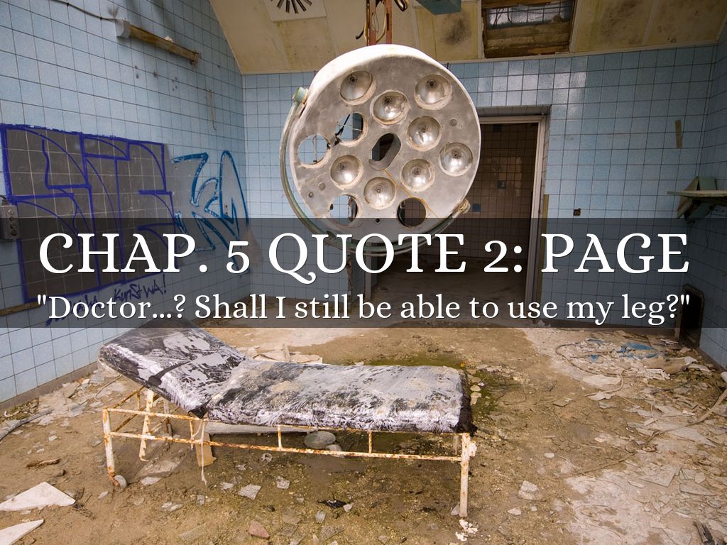 Elie was scared after his leg surgery. He was unable to feel his leg with fear that it may have been amputated. He asked the doctor about his leg and was reassured that he would be recovered in a fortnight.