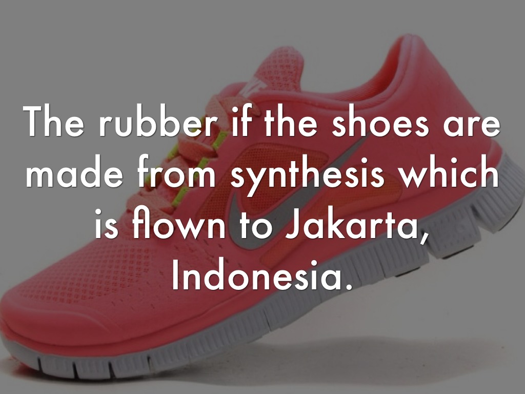 The rubber if the shoes are made from synthesis which is flown to Jakarta, Indonesia.
