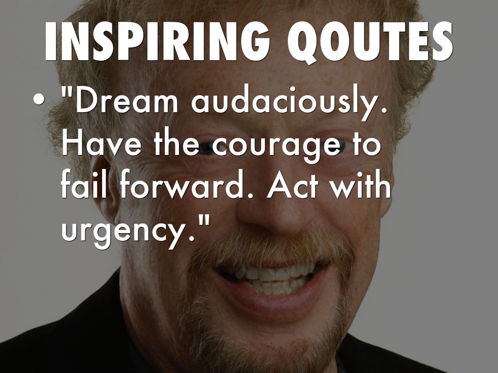 "Dream audaciously. Have the courage to fail forward. Act with urgency."