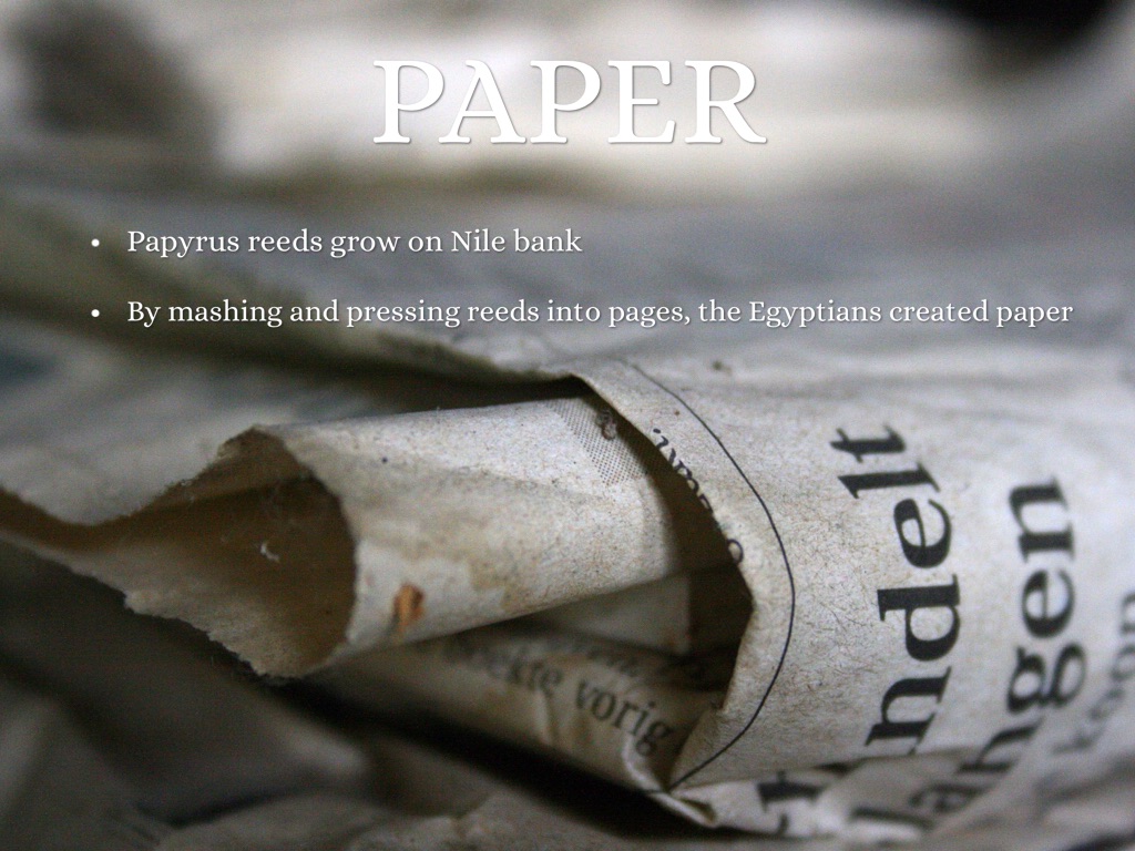 By mashing and pressing reeds into pages, the Egyptians created paper