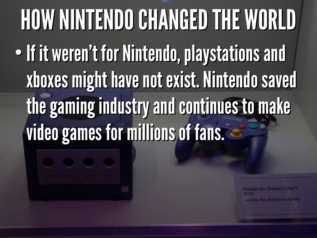 If it weren't for Nintendo, playstations and xboxes might have not exist. Nintendo saved the gaming industry and continues to make video games for millions of fans.