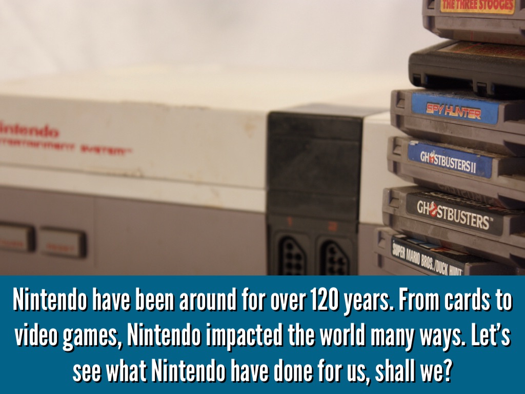 Nintendo have been around for over 120 years. From cards to video games, Nintendo impacted the world many ways. Let's see what Nintendo have done for us, shall we?