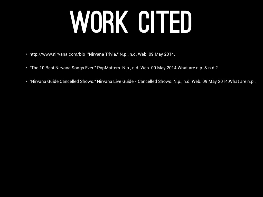 "Nirvana Trivia." N.p., n.d. Web. 09 May 2014.