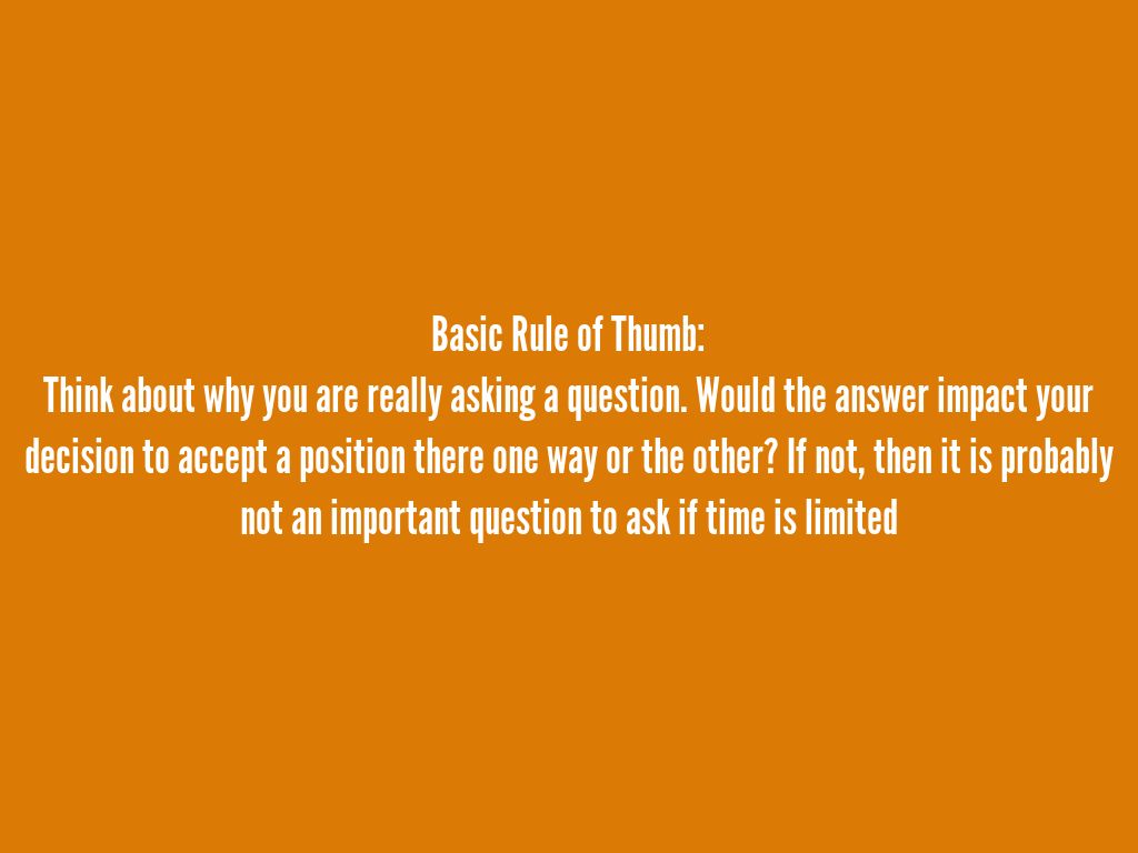Think about why you are really asking a question. Would the answer impact your decision to accept a position there one way or the other? If not, then it is probably not an important question to ask if time is limited
