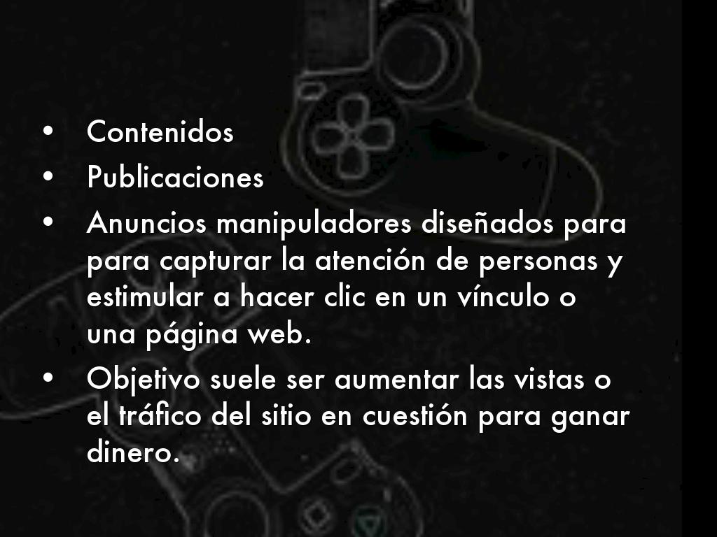 Anuncios manipuladores diseñados para para capturar la atención de personas y estimular a hacer clic en un vínculo o una página web.
