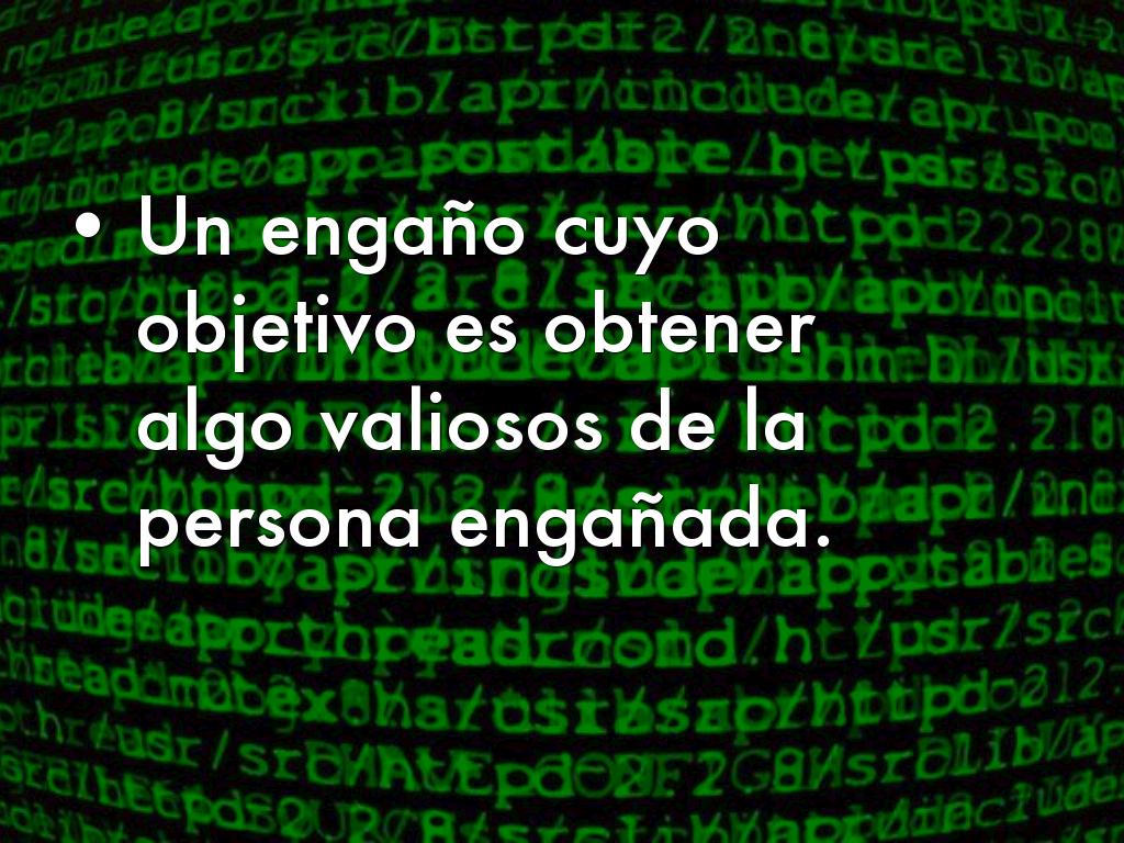 Un engaño cuyo objetivo es obtener algo valiosos de la persona engañada.