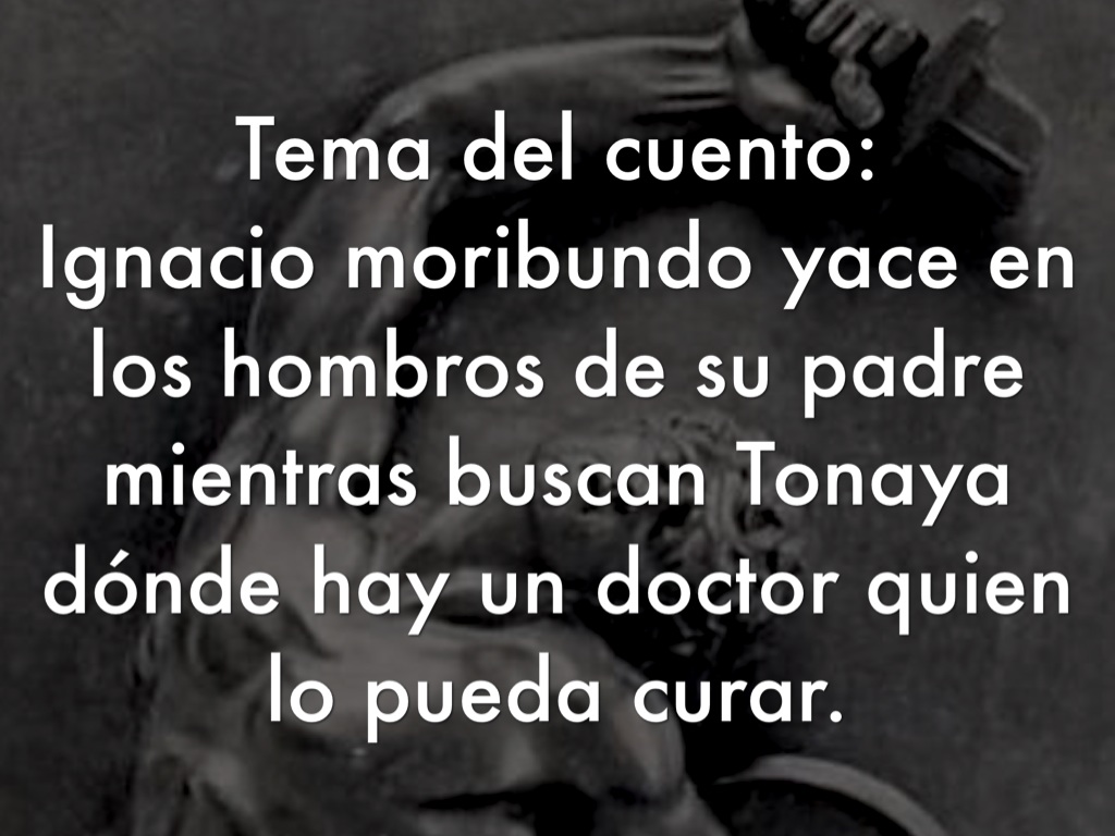 Ignacio moribundo yace en los hombros de su padre mientras buscan Tonaya dónde hay un doctor quien lo pueda curar.