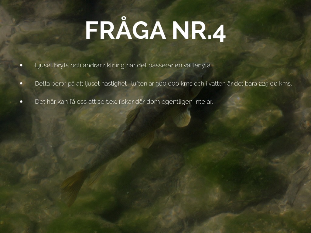 Detta beror på att ljuset hastighet i luften är 300 000 kms och i vatten är det bara 225 00 kms.