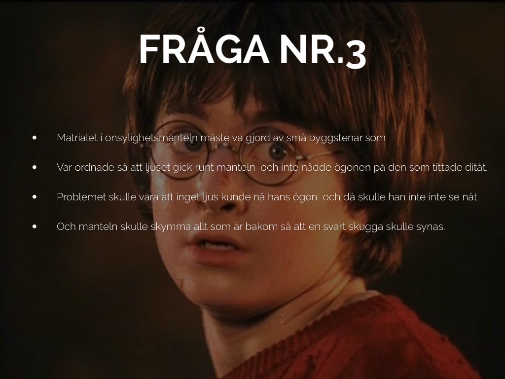 Matrialet i onsylighetsmanteln måste va gjord av små byggstenar som
