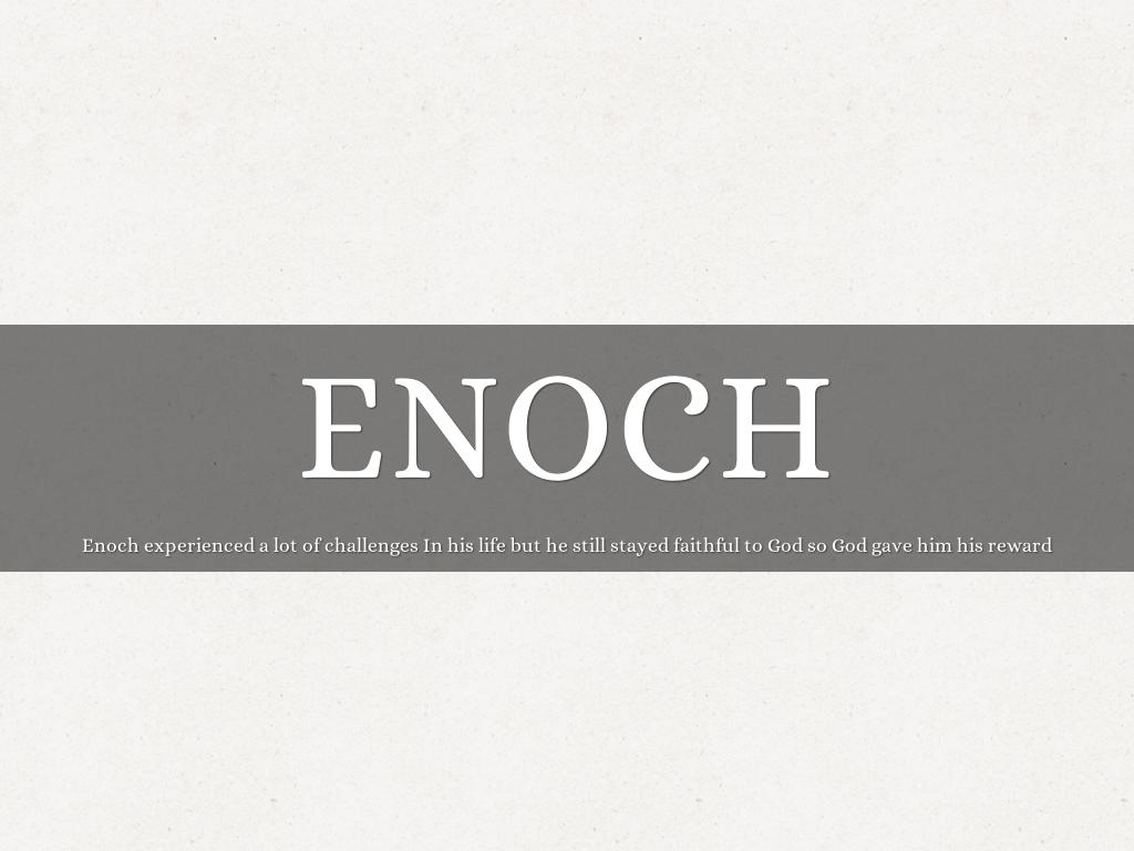 Enoch experienced a lot of challenges In his life but he still stayed faithful to God so God gave him his reward