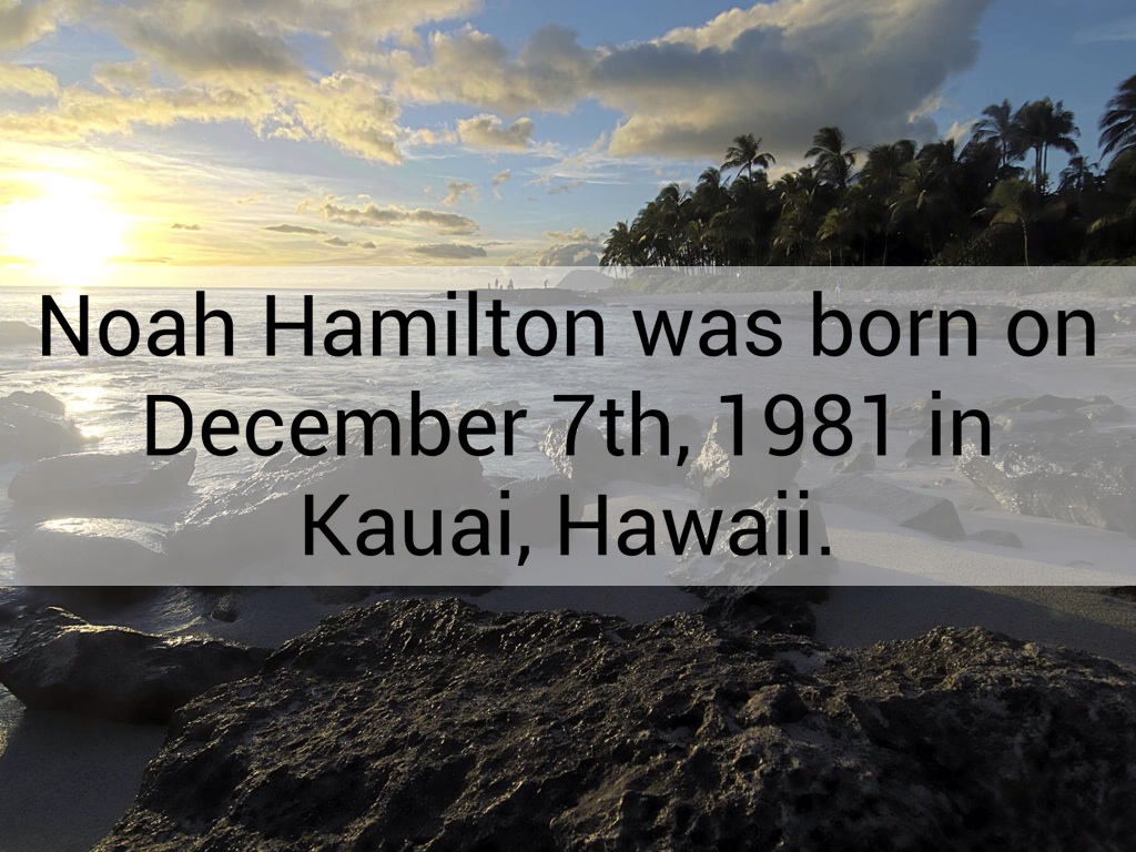 Noah Hamilton was born on December 7th, 1981 in Kauai, Hawaii.