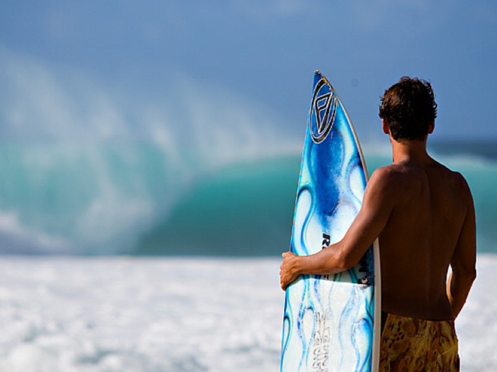HE TAKES PICTURE OF SURFING AND TRAVELING