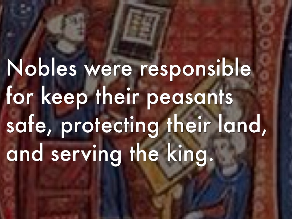Nobles were responsible for keep their peasants safe, protecting their land, and serving the king.