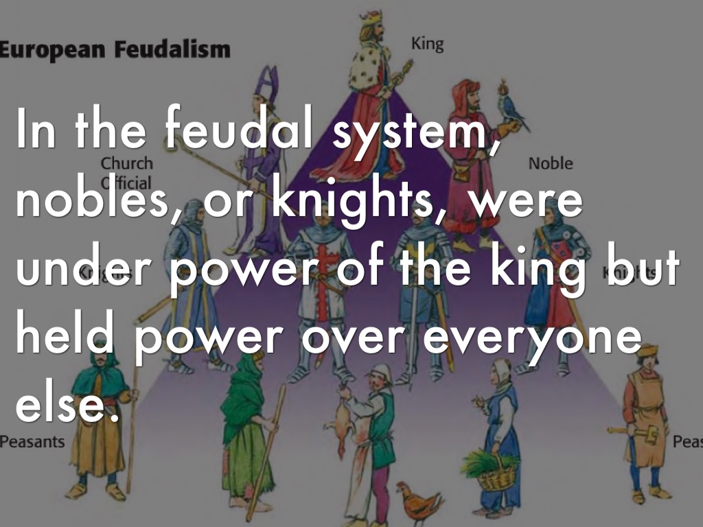 In the feudal system, nobles, or knights, were under power of the king but held power over everyone else.