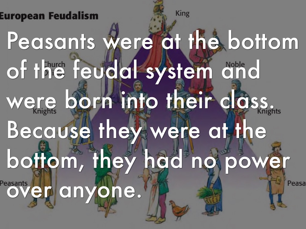 Peasants were at the bottom of the feudal system and were born into their class. Because they were at the bottom, they had no power over anyone.