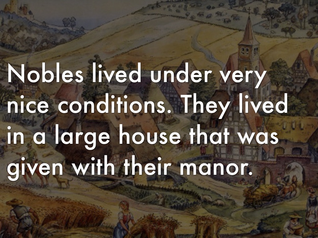 Nobles lived under very nice conditions. They lived in a large house that was given with their manor.