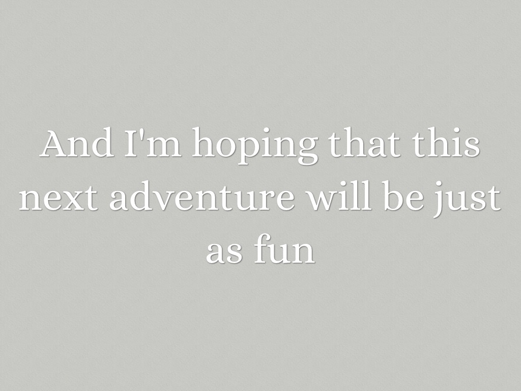 And I'm hoping that this next adventure will be just as fun