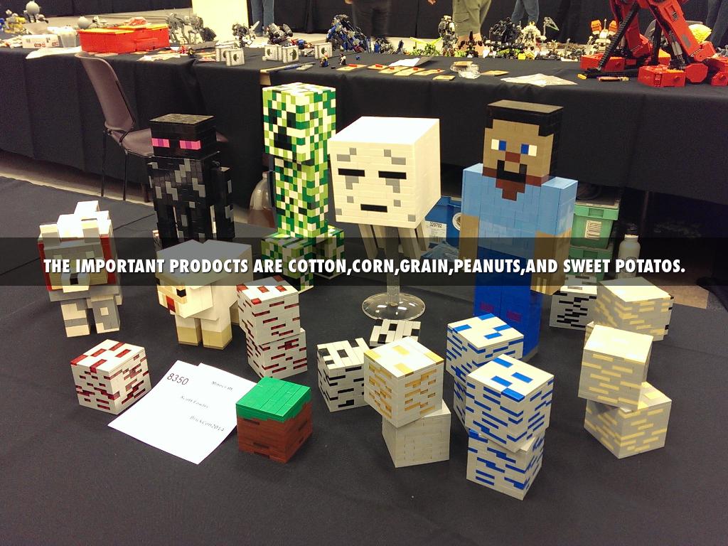 THE IMPORTANT PRODOCTS ARE COTTON,CORN,GRAIN,PEANUTS,AND SWEET POTATOS.