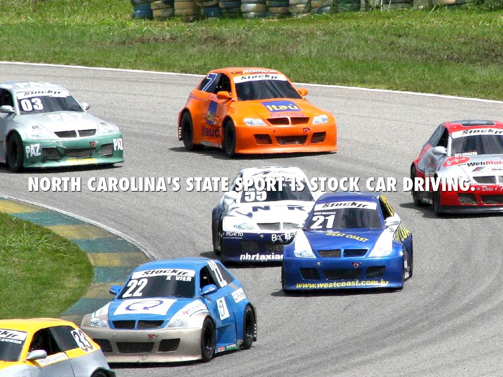 NORTH CAROLINA'S STATE SPORT IS STOCK CAR DRIVING.