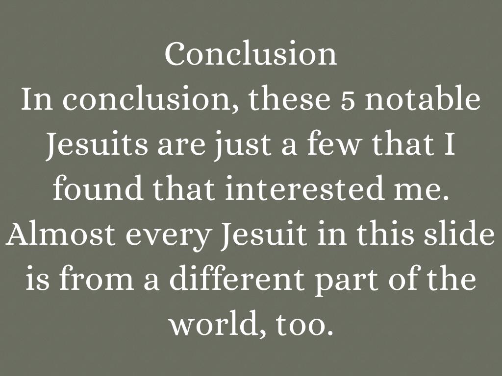 In conclusion, these 5 notable Jesuits are just a few that I found that interested me. Almost every Jesuit in this slide is from a different part of the world, too.