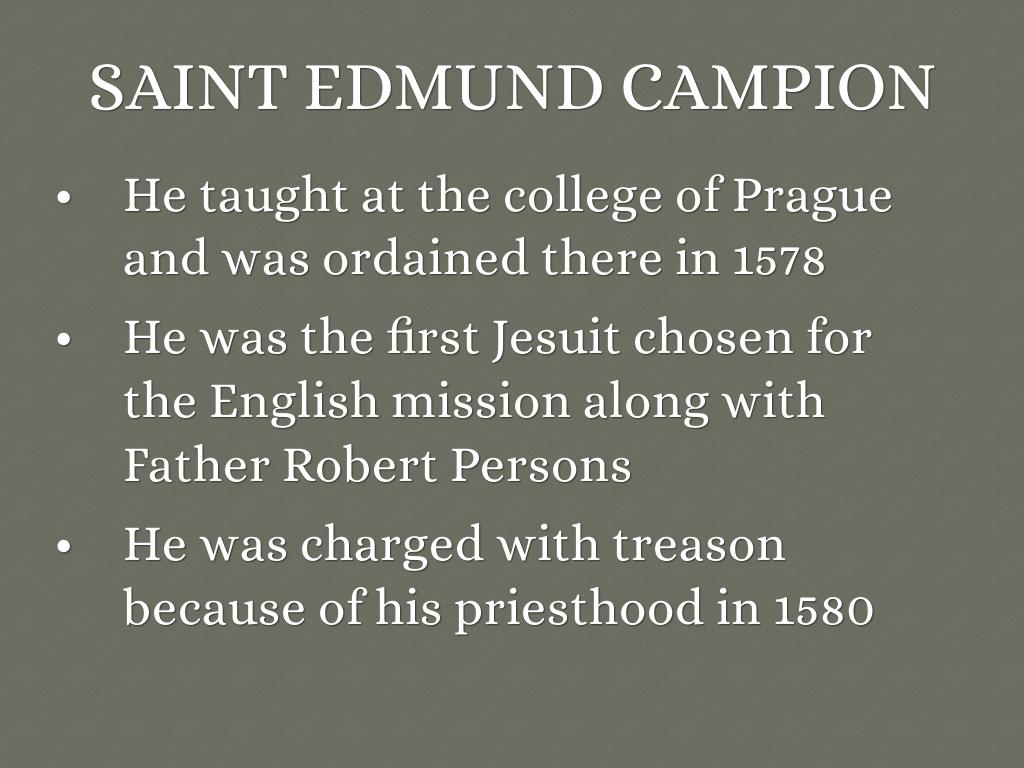 He was the first Jesuit chosen for the English mission along with Father Robert Persons