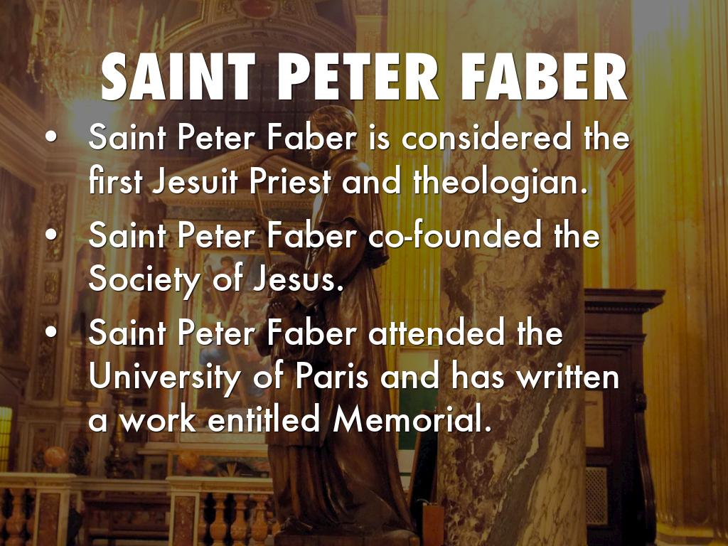 • Saint Peter Faber attended the University of Paris and has written a work entitled Memorial.