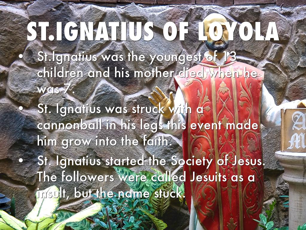 St. Ignatius was struck with a cannonball in his legs this event made him grow into the faith.
