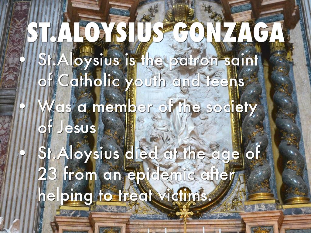 St.Aloysius died at the age of 23 from an epidemic after helping to treat victims.