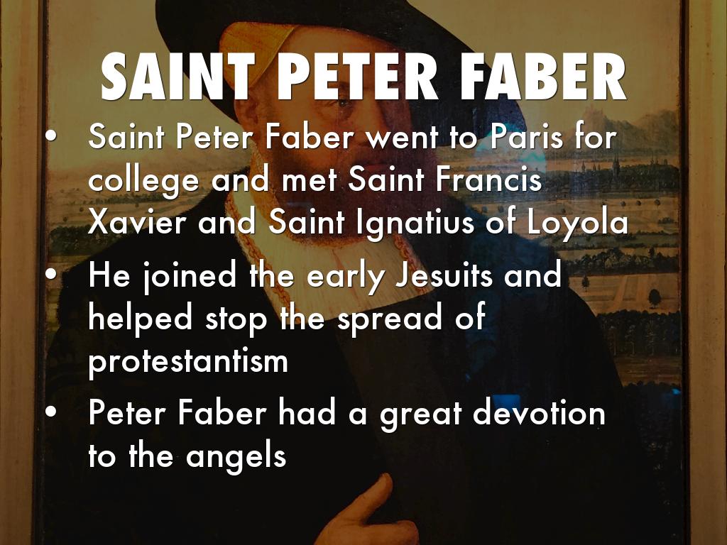 Saint Peter Faber went to Paris for college and met Saint Francis Xavier and Saint Ignatius of Loyola