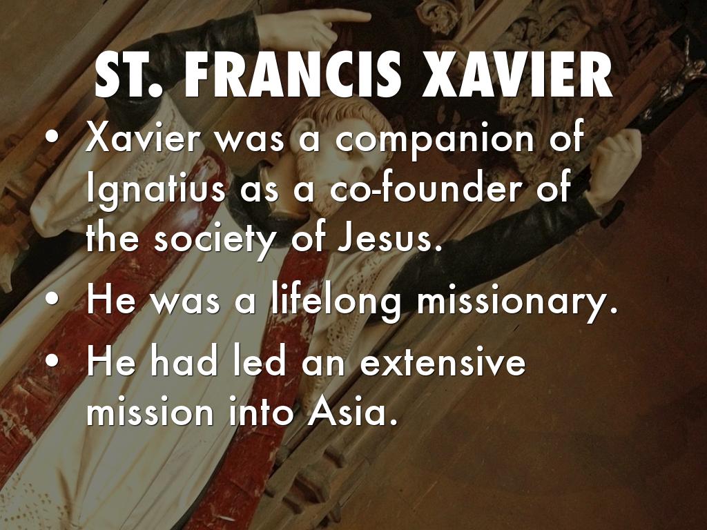 Xavier was a companion of Ignatius as a co-founder of the society of Jesus.