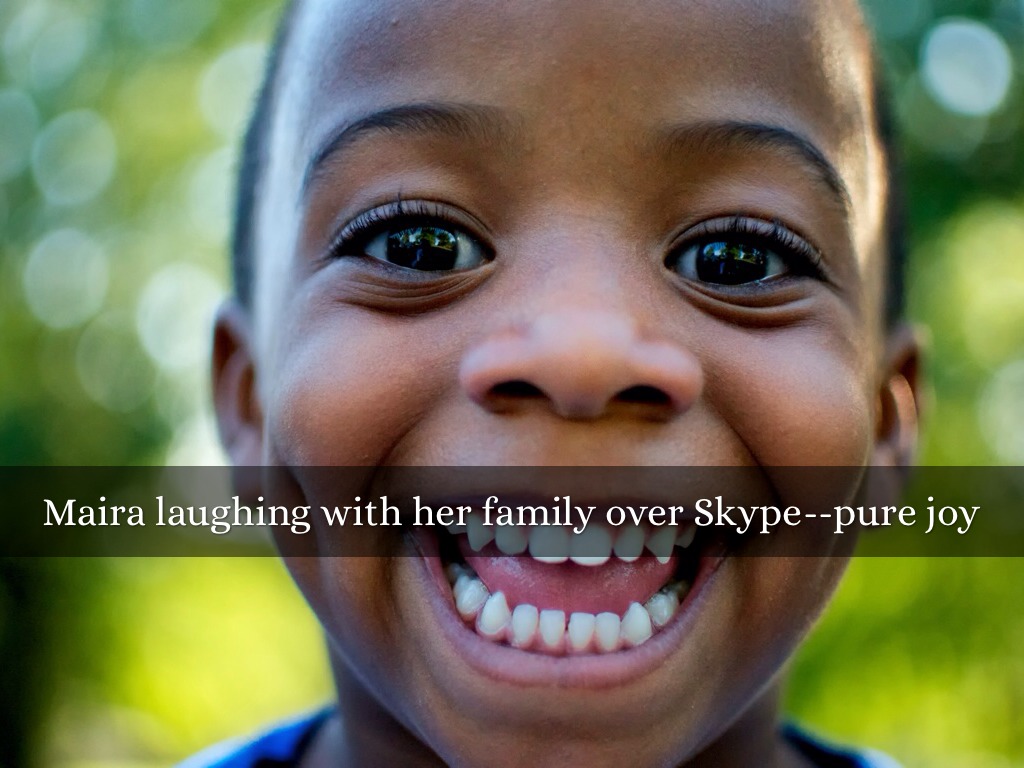 Maira laughing with her family over Skype--pure joy