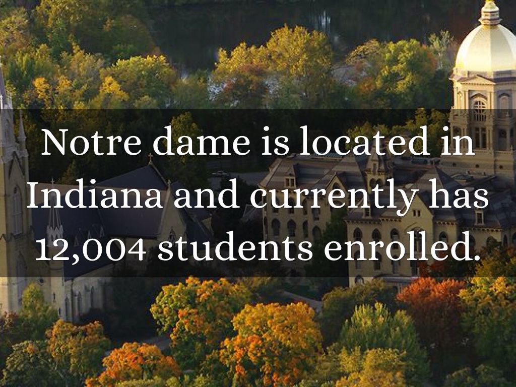 Notre dame is located in Indiana and currently has 12,004 students enrolled.