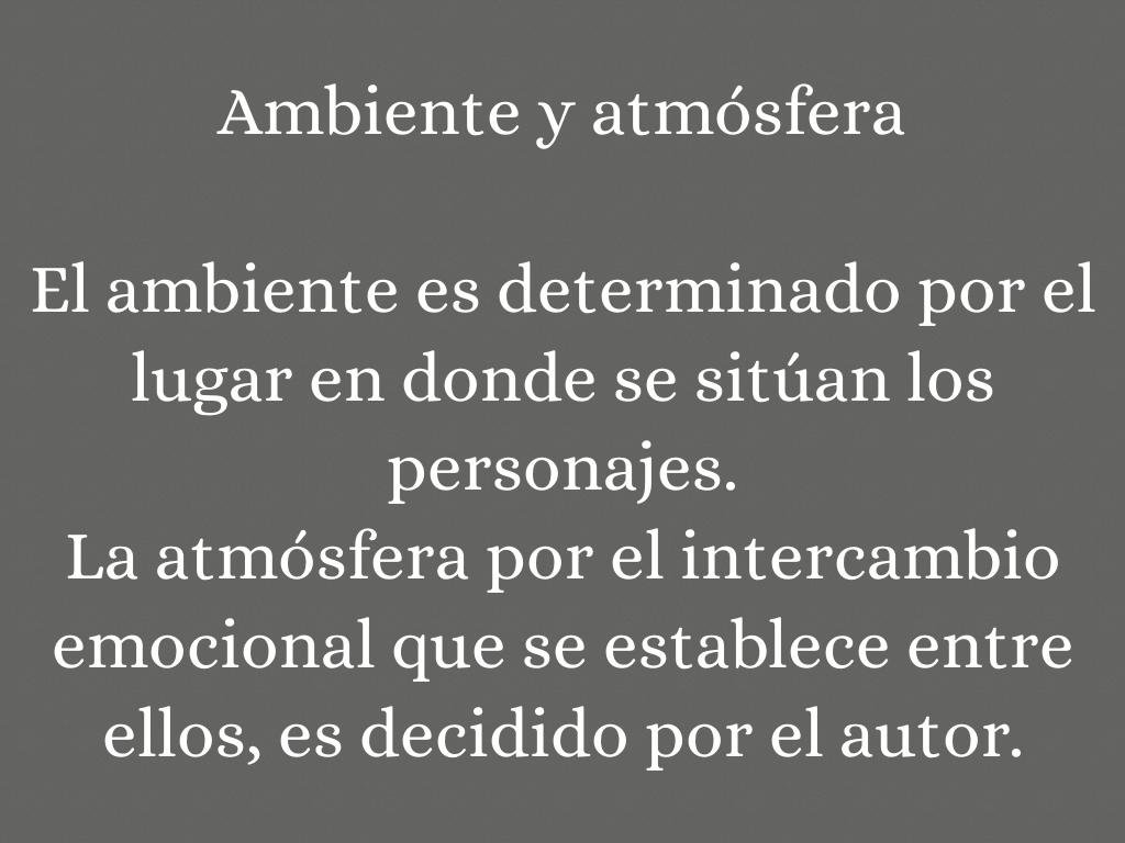 El ambiente es determinado por el lugar en donde se sitúan los personajes.