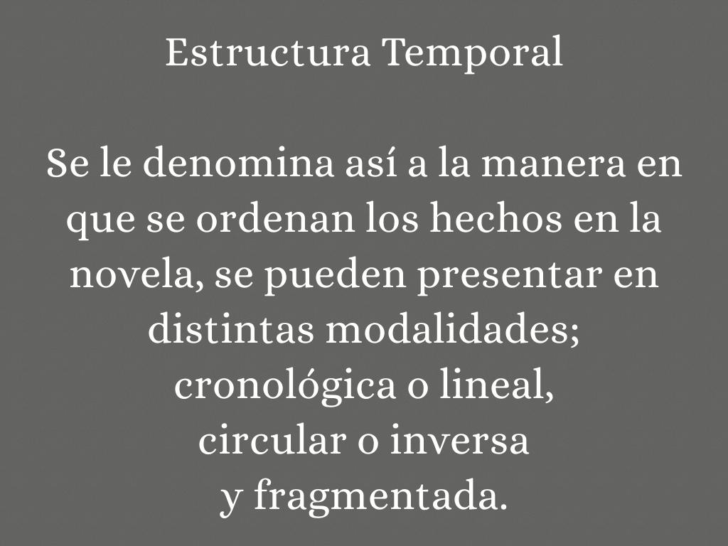 Se le denomina así a la manera en que se ordenan los hechos en la novela, se pueden presentar en distintas modalidades;