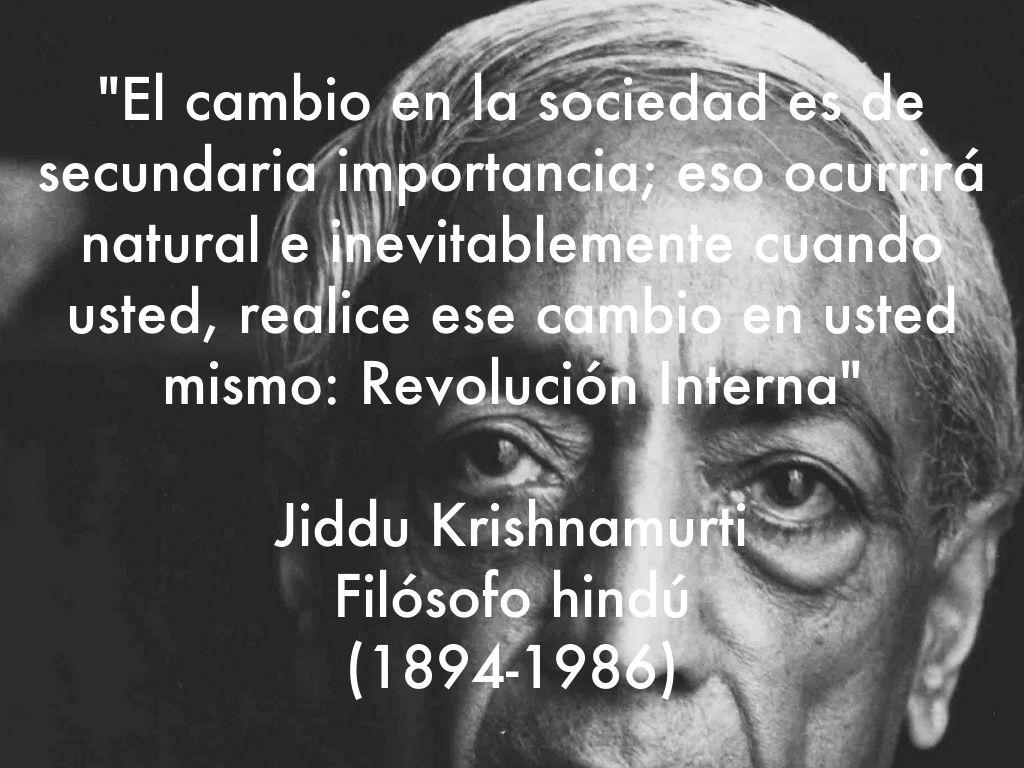 "El cambio en la sociedad es de secundaria importancia; eso ocurrirá natural e inevitablemente cuando usted, realice ese cambio en usted mismo: Revolución Interna"