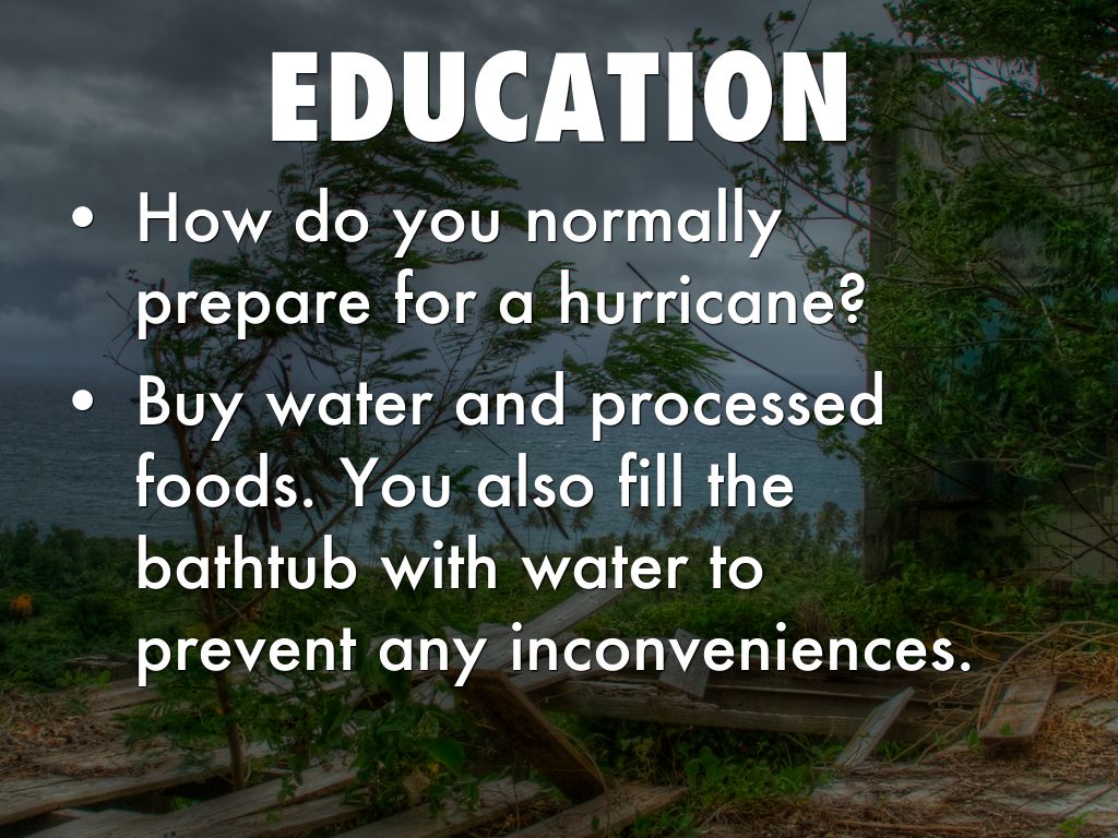 Buy water and processed foods. You also fill the bathtub with water to prevent any inconveniences.
