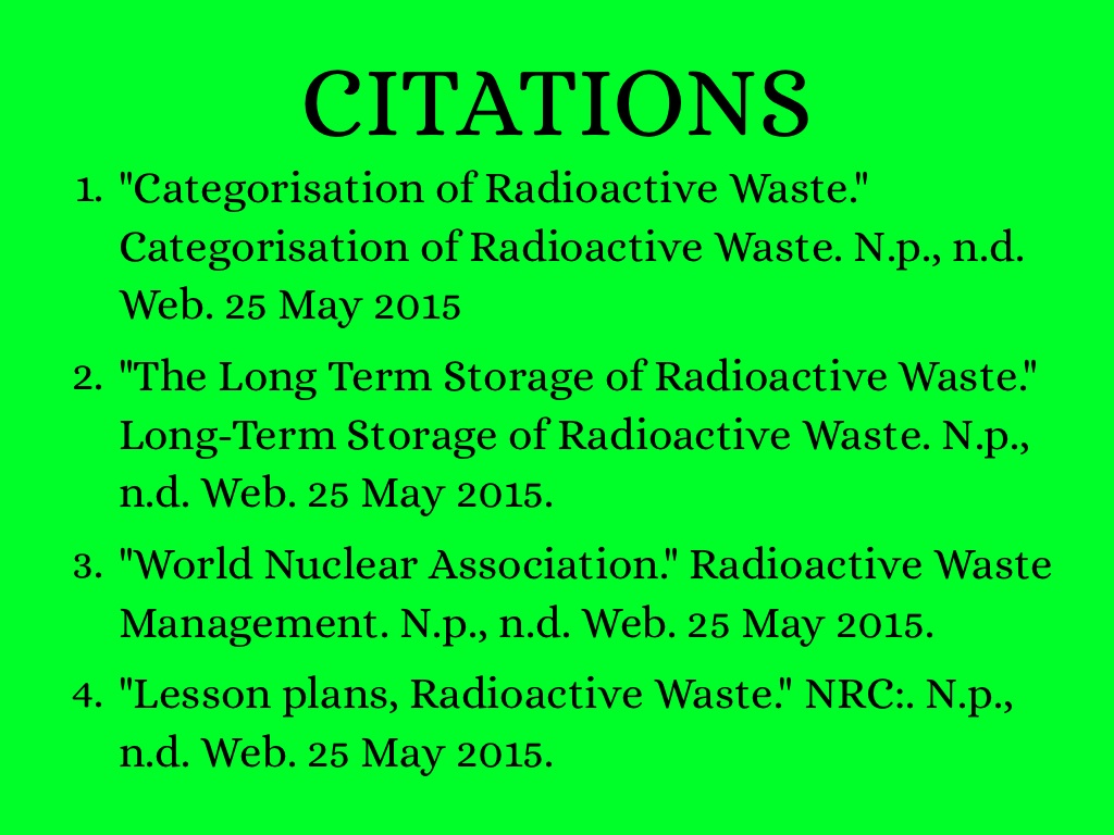 "Lesson plans, Radioactive Waste." NRC:. N.p., n.d. Web. 25 May 2015.