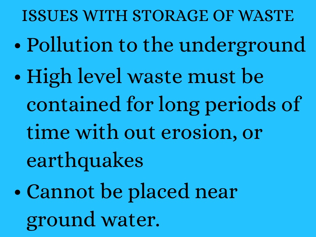 High level waste must be contained for long periods of time with out erosion, or earthquakes