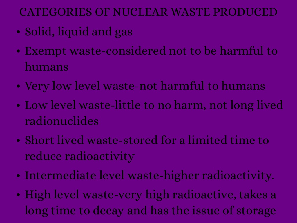 CATEGORIES OF NUCLEAR WASTE PRODUCED