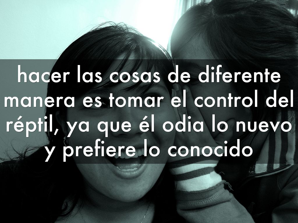 hacer las cosas de diferente manera es tomar el control del réptil, ya que él odia lo nuevo y prefiere lo conocido