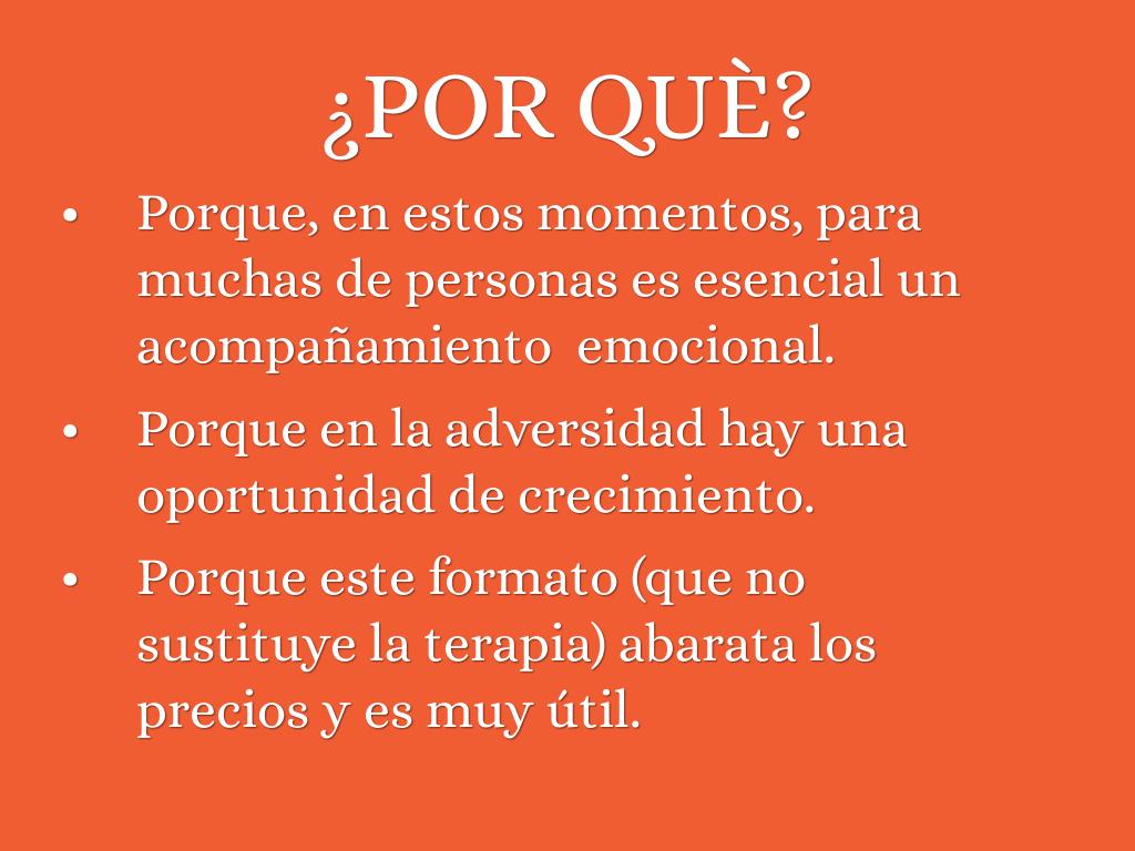 - Porque, en estos momentos, para muchas de personas es esencial un acompañamiento emocional.