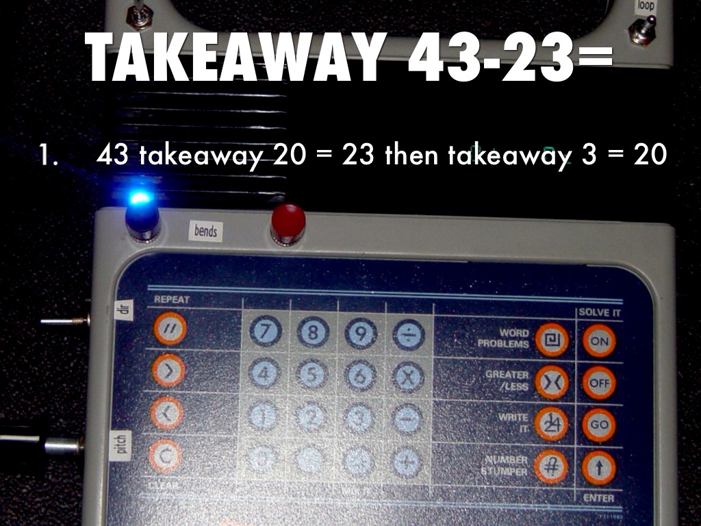 43 takeaway 20 = 23 then takeaway 3 = 20