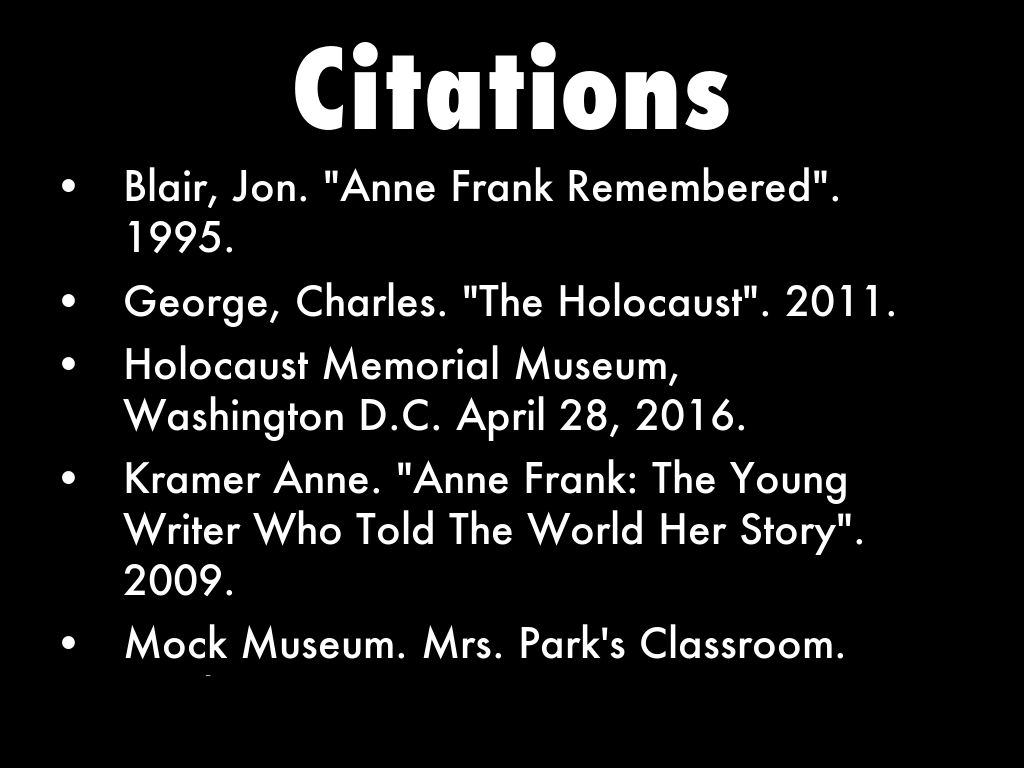 Blair, Jon. "Anne Frank Remembered". 1995.