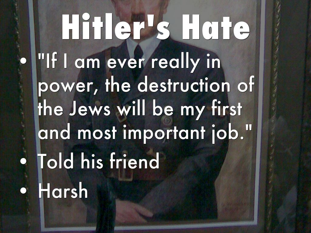 "If I am ever really in power, the destruction of the Jews will be my first and most important job."